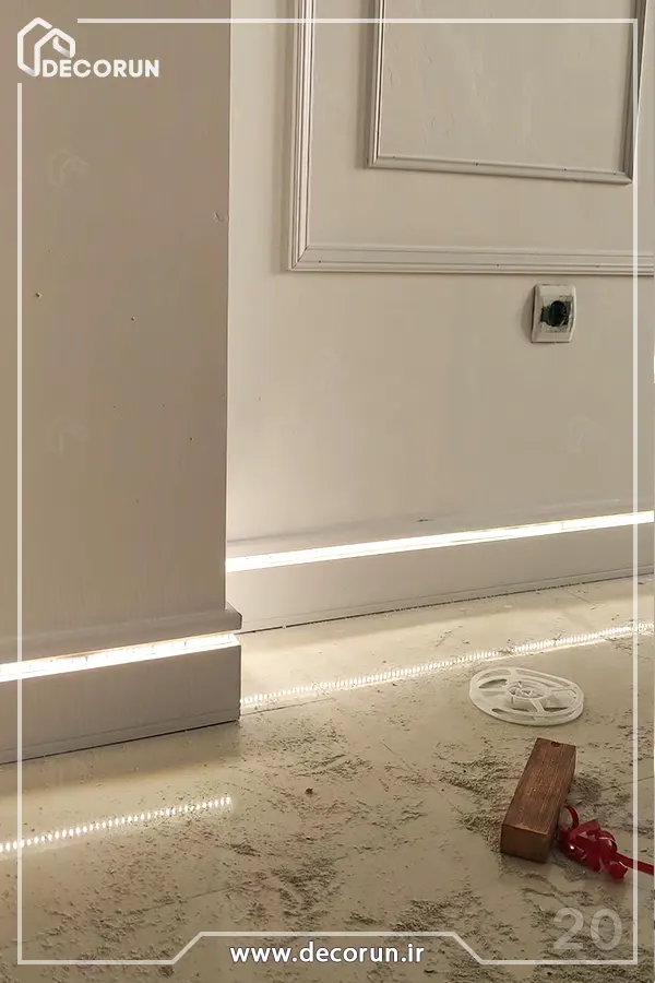 مهم ترین نکته در نصب قرنیز نوری تامین برق و جای گذاری محل ترانس یا درایور برق در مدل های ریسه 12 و 24 ولت می باشد. برای این کار می توانید در دیوار قسمت هایی را متناسب با اندازه درایور که ابعاد کوچکی دارد شیار ایجاد کرده و درایور را داخل آن جای گذاری کنید.